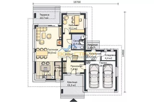 Размер дома 14,9х15,7