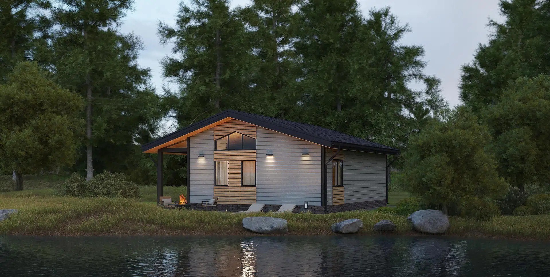 • Покрытие кровли - Гибкая битумная черепица с цветным каменным гранулятом;