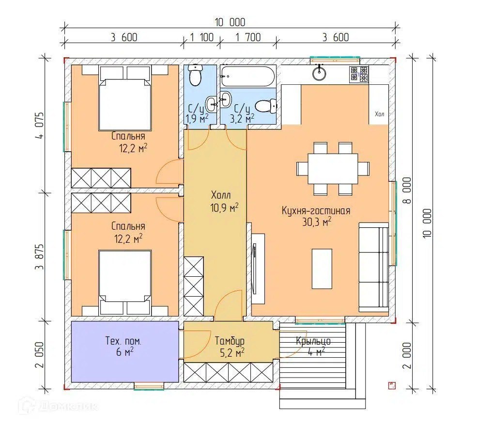 Размер дома 10х10