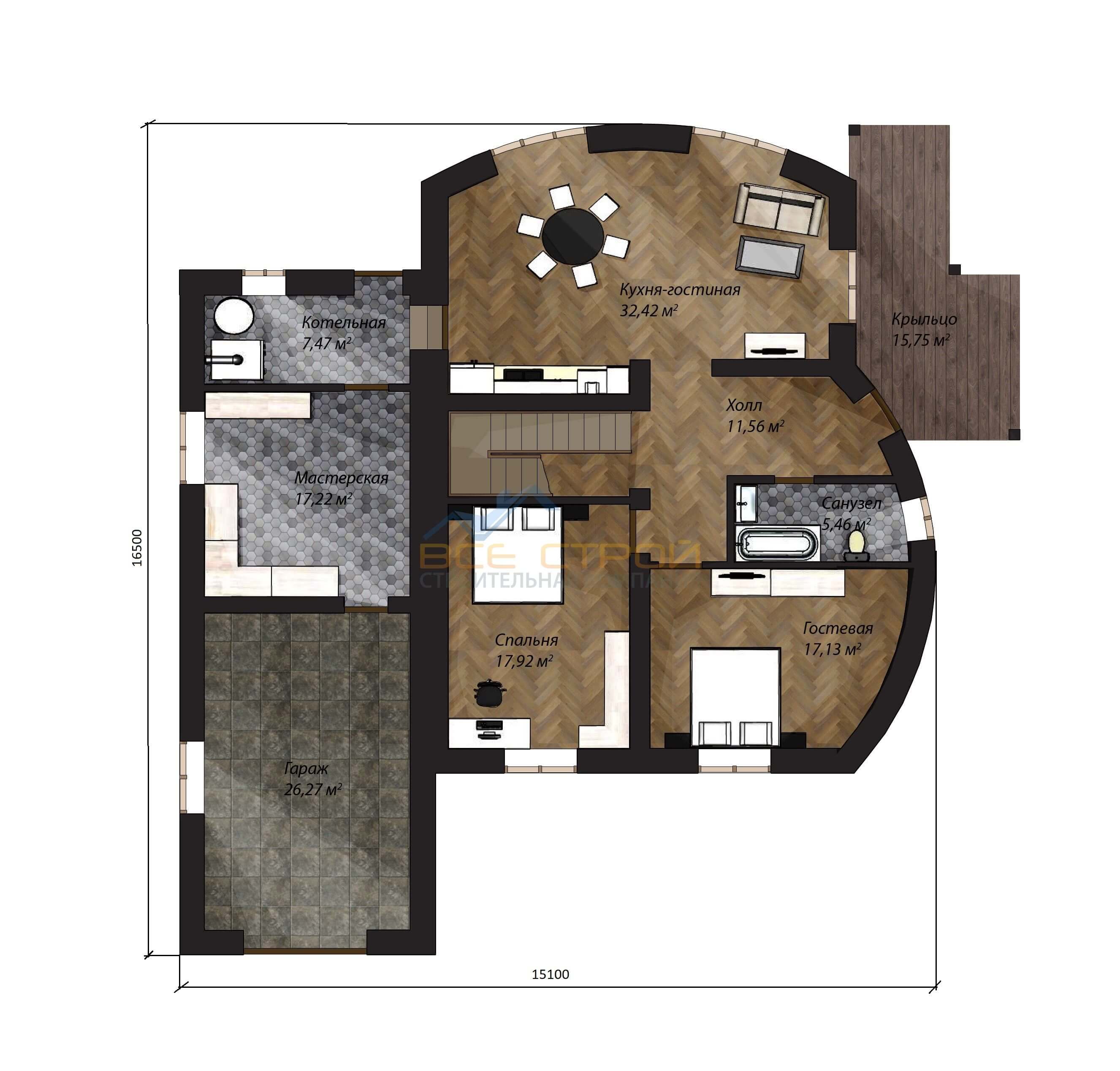 Размер дома 16,5х15,1