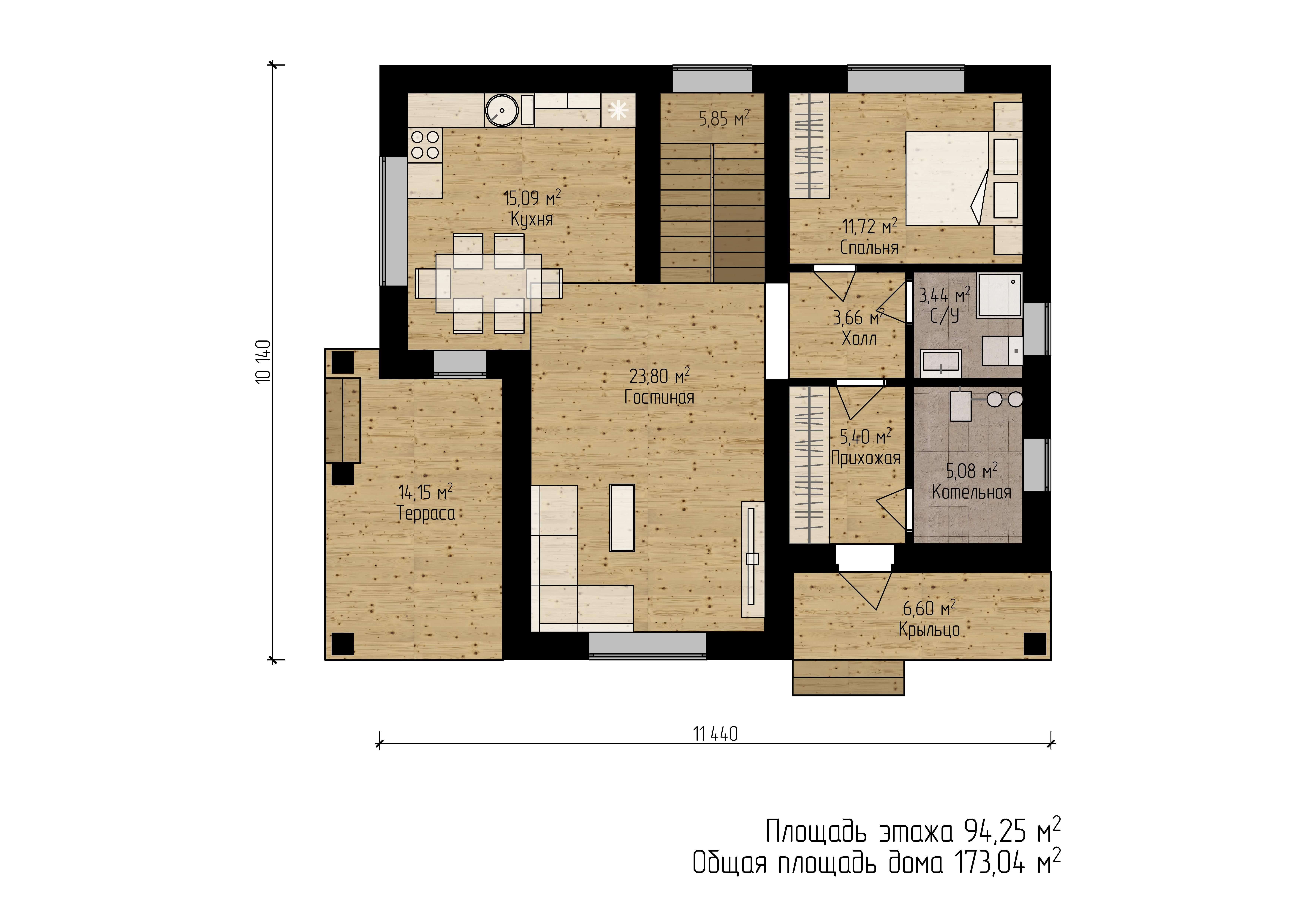Размер дома 11,4х10,1