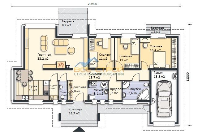Размер дома 12,3х20,4