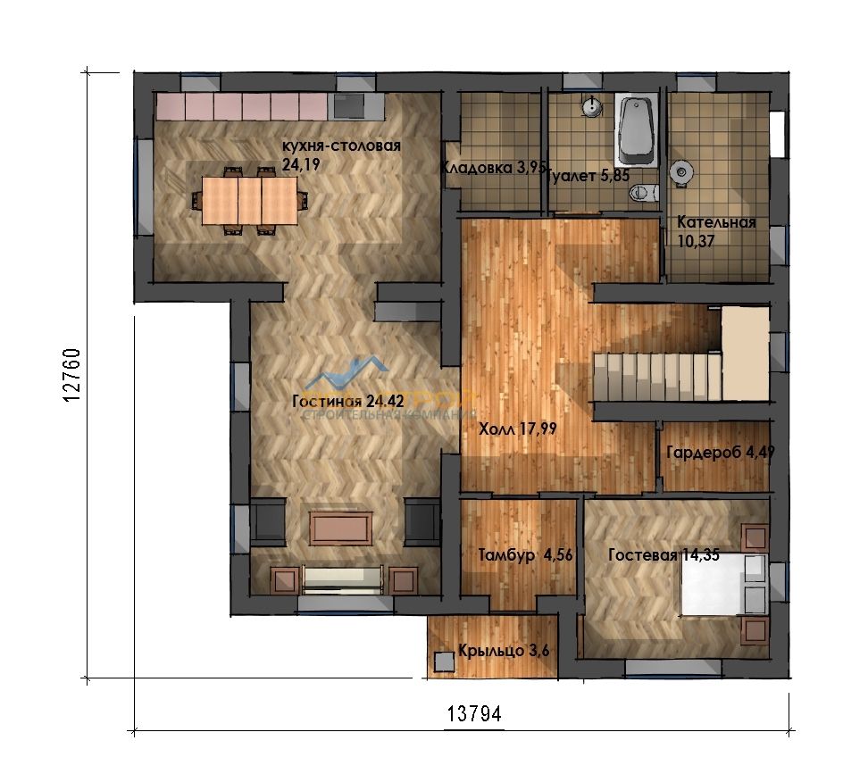 Размер дома 12.6х13,2