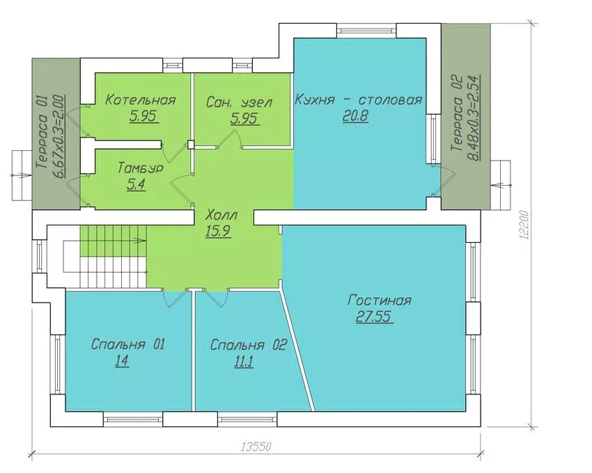 Размер дома 12,2x13,5