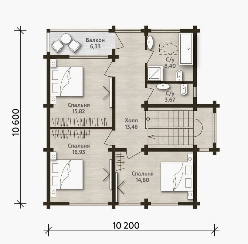 Размер дома 10,6х10,2