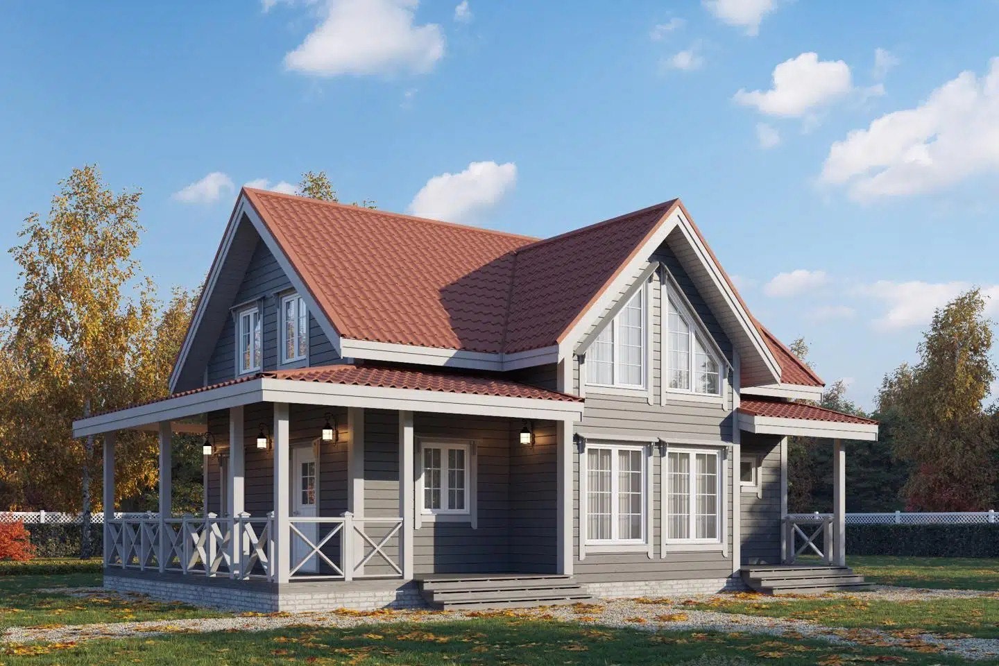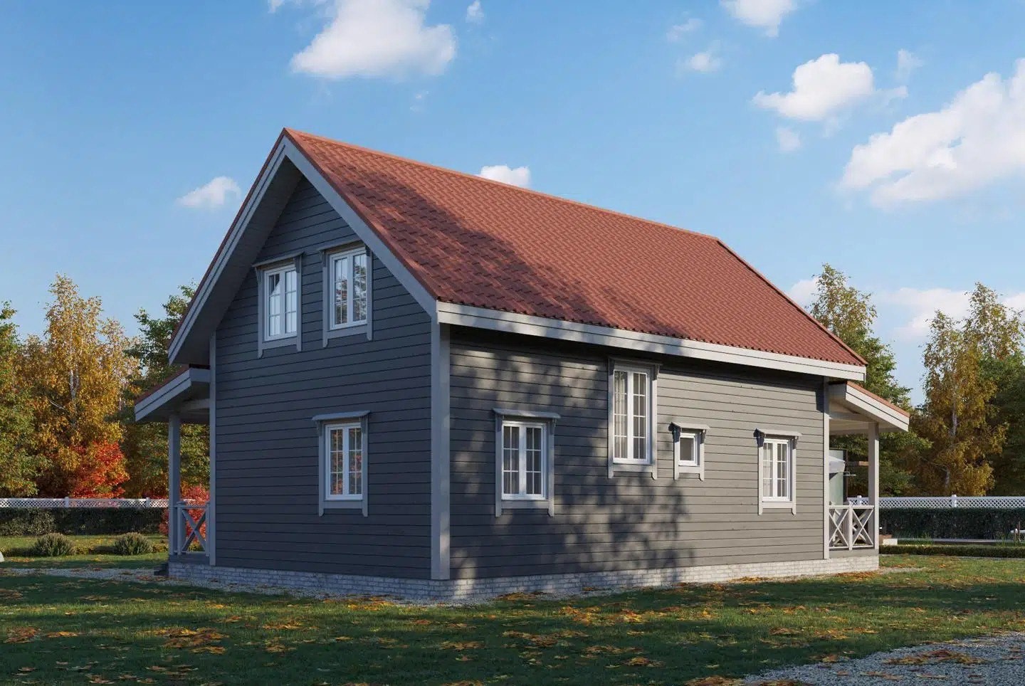 • Покрытие кровли - Гибкая битумная черепица с цветным каменным гранулятом;