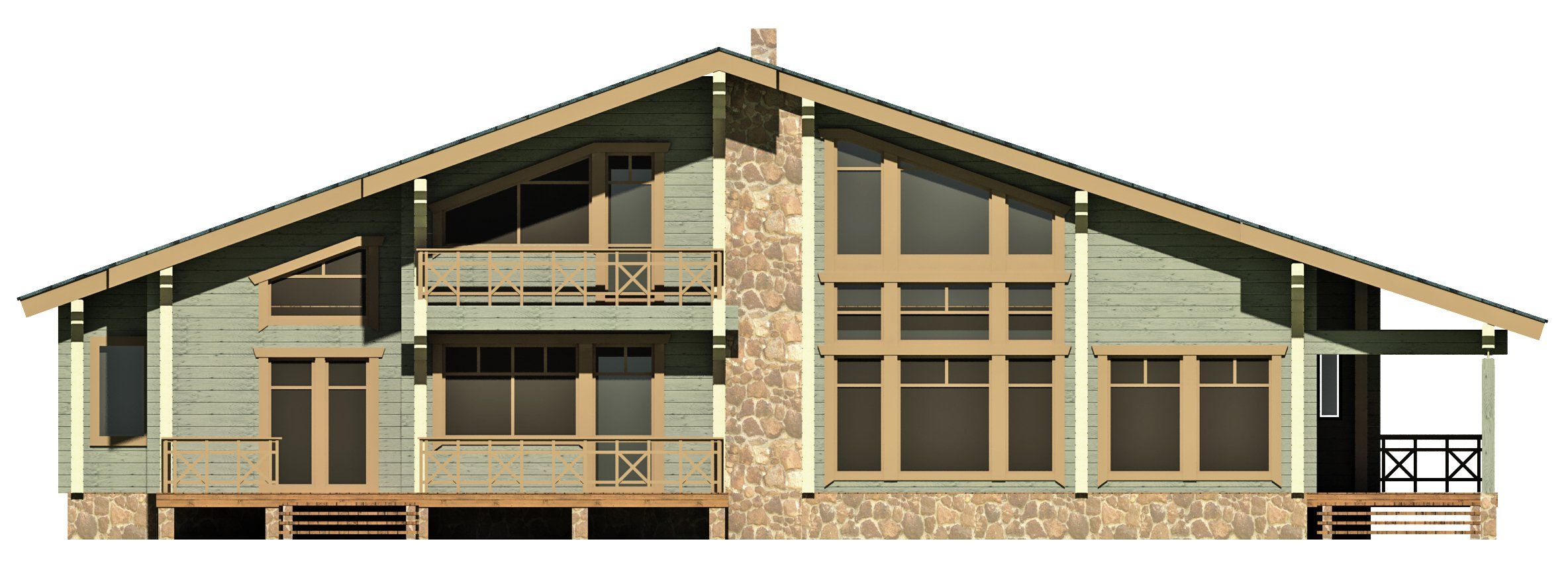 • Покрытие кровли - Гибкая битумная черепица с цветным каменным гранулятом;