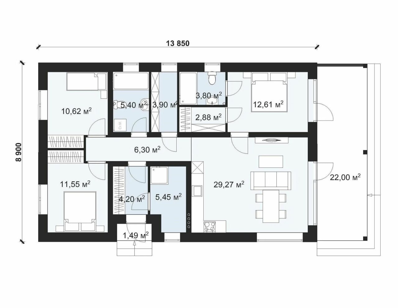 Размер дома 8,9х13,8
