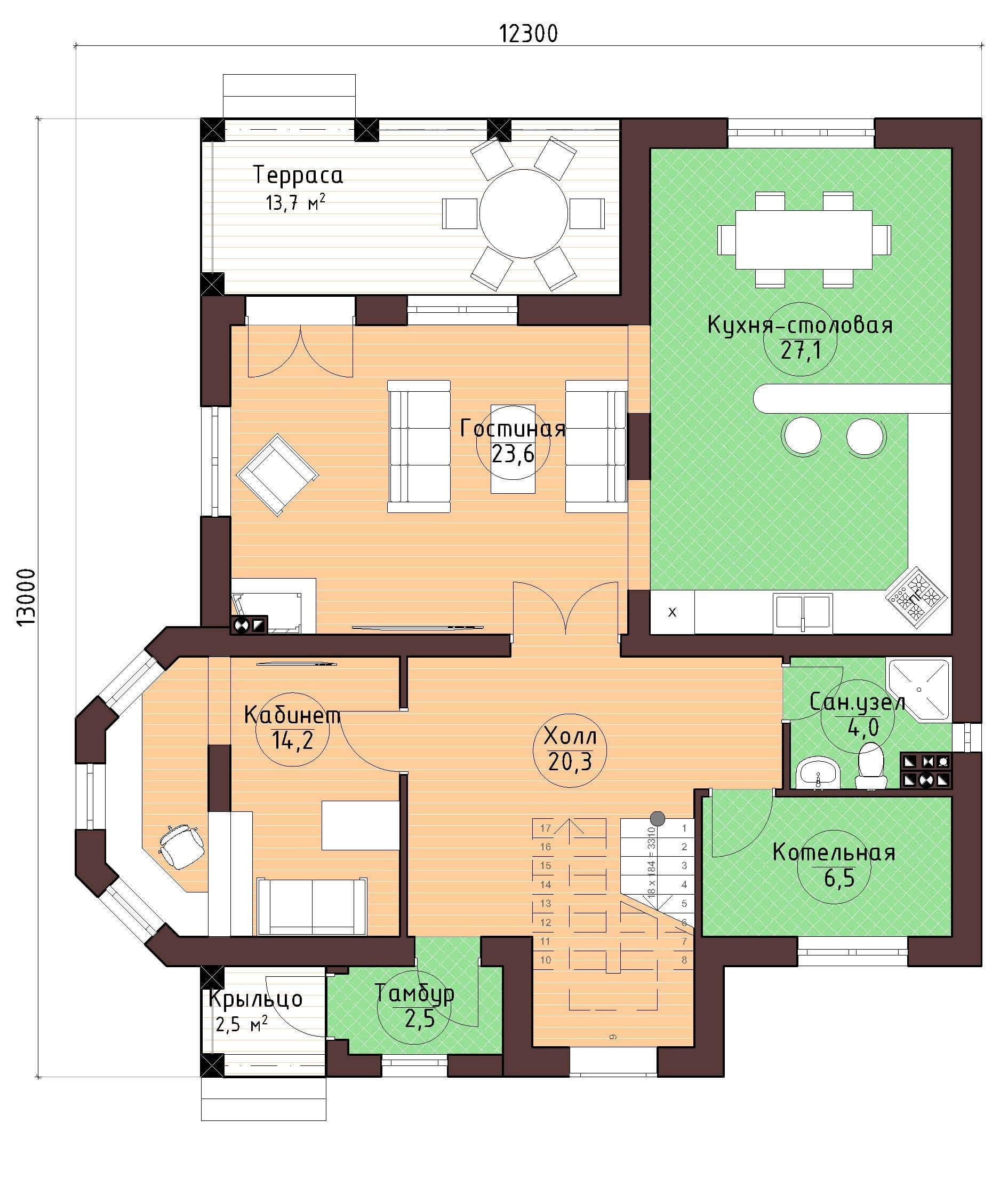 Размер дома 13х12,3