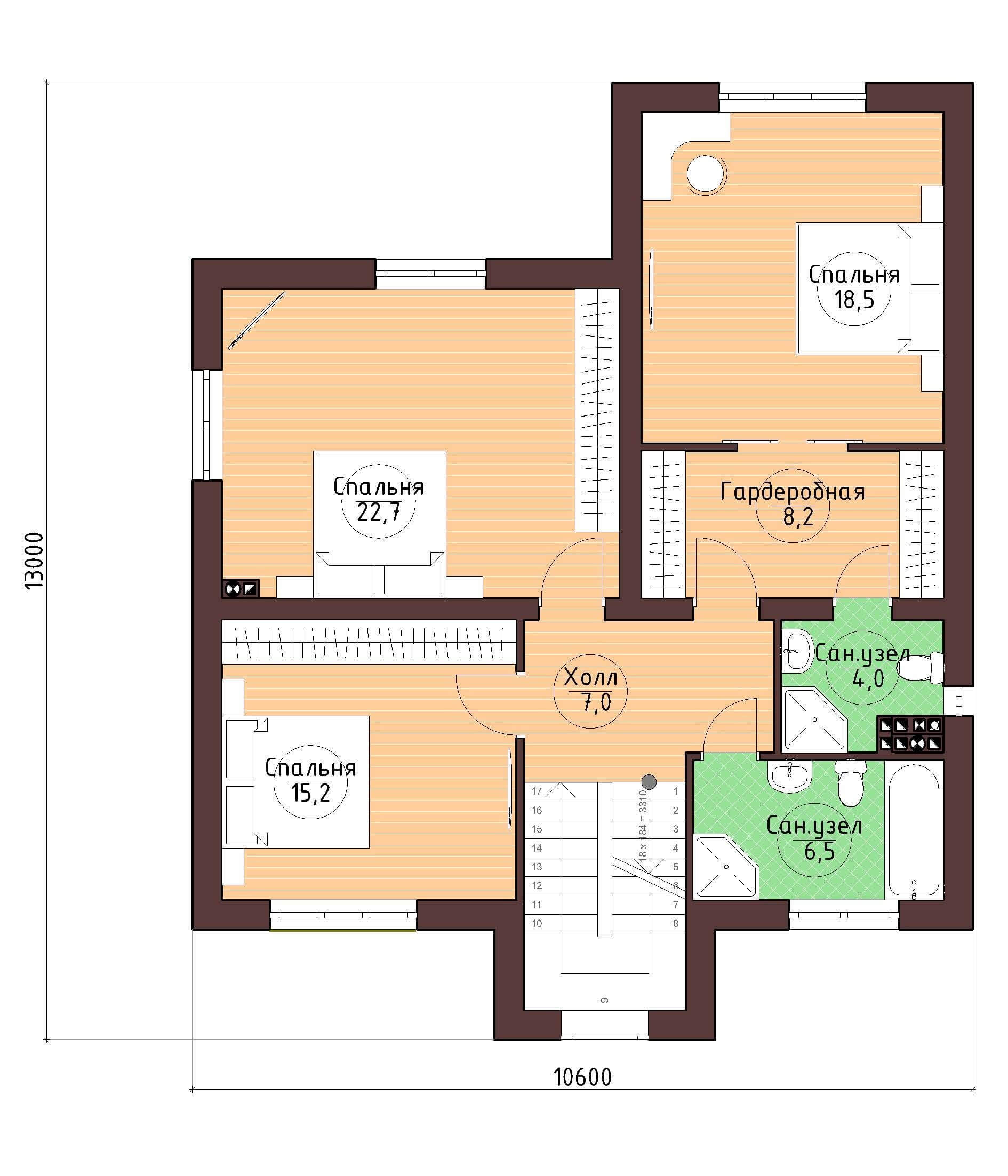Кол-во спален с 3 спальнями