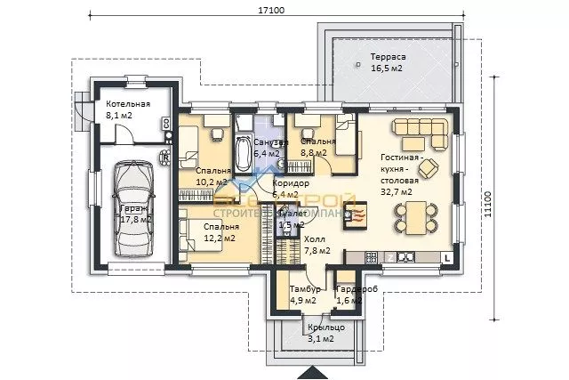 Размер дома 11,1х17,1