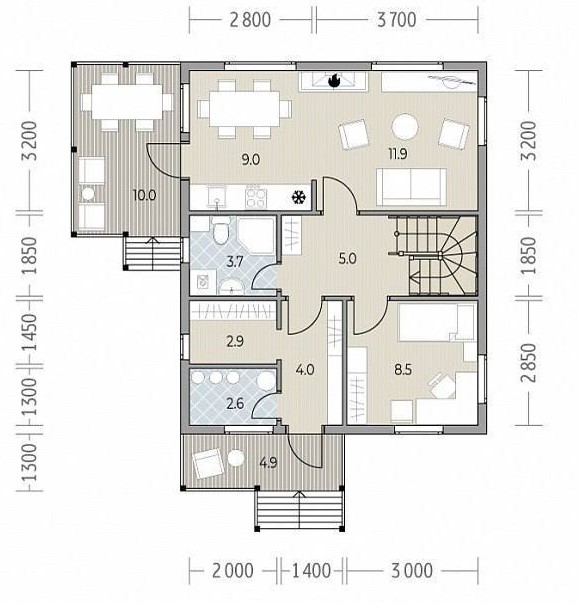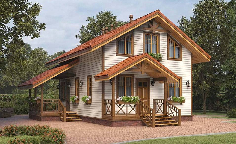 • Покрытие кровли - Гибкая битумная черепица с цветным каменным гранулятом;