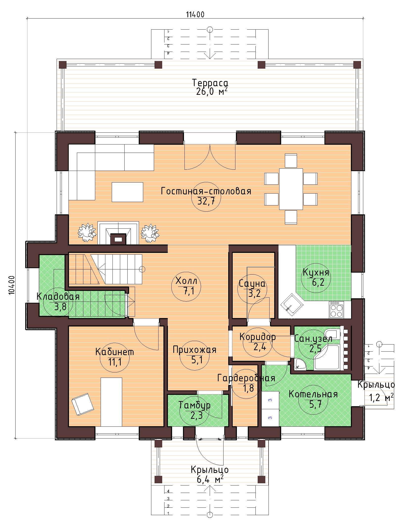 Размер дома 11,4х10,4