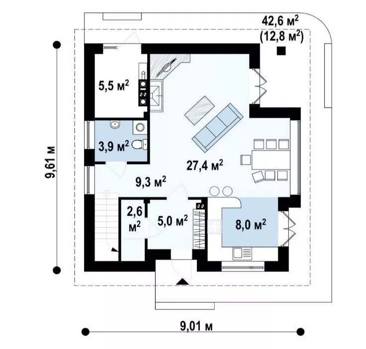 Размер дома 9,6х9