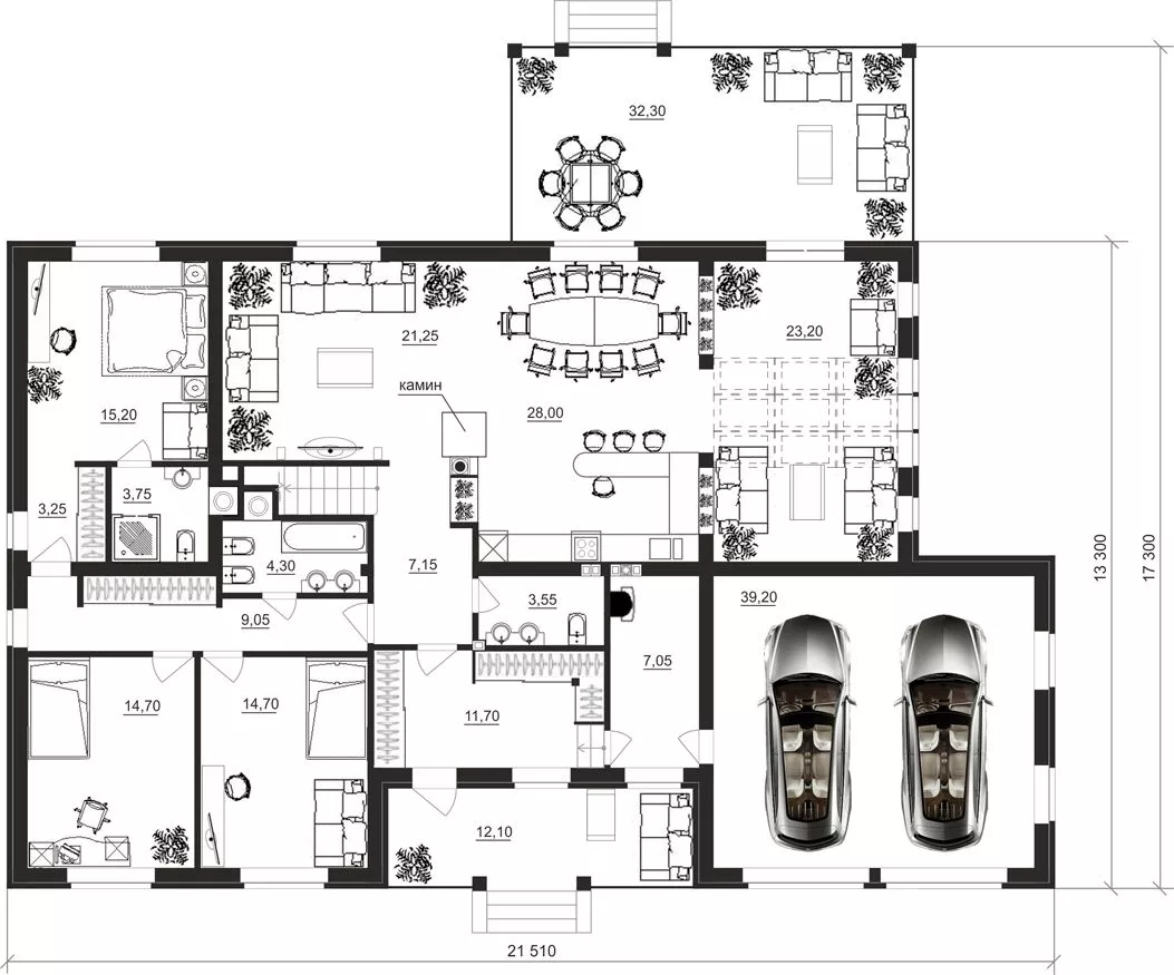 Размер дома 21,5х17,3