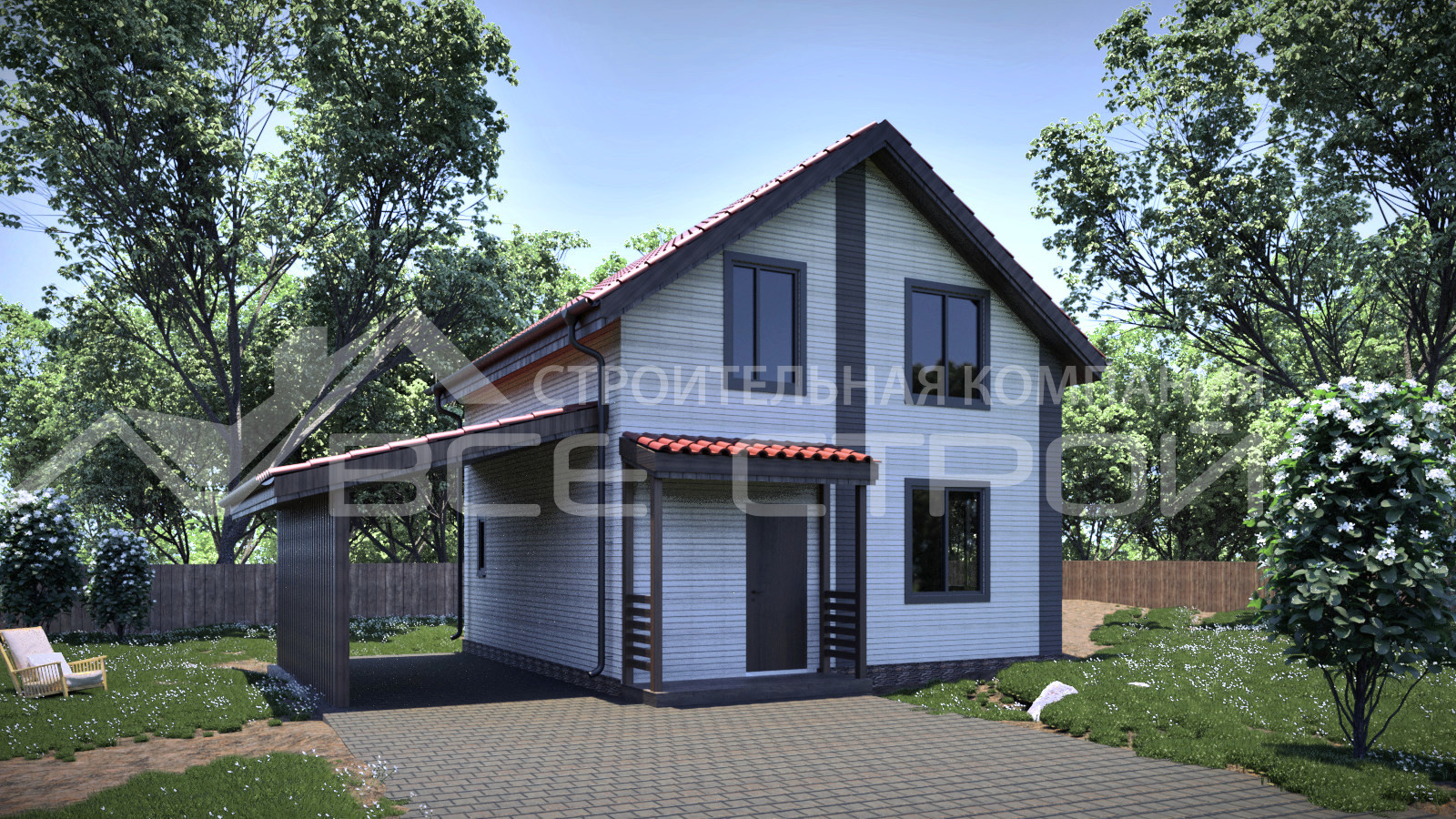 • Покрытие кровли - Гибкая битумная черепица с цветным каменным гранулятом;