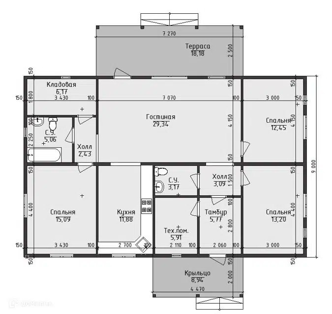 Размер дома 9х13,2