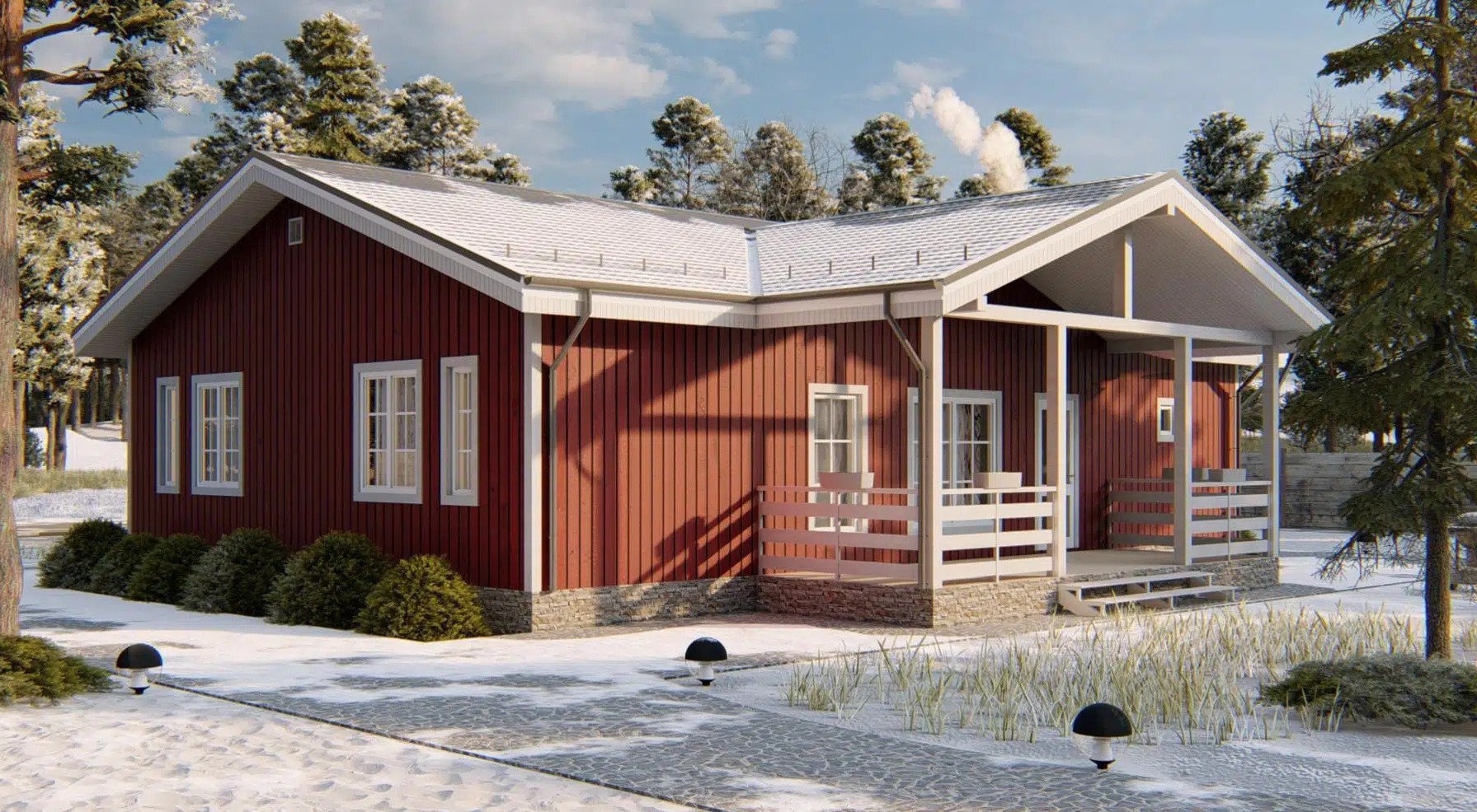 • Покрытие кровли - Гибкая битумная черепица с цветным каменным гранулятом;