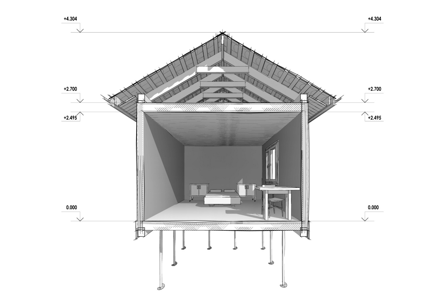 • В серийных проектах мы используем буронабивные сваи диаметром 400мм и длиной 3 метра, если иное не требуется по результатам геологии.