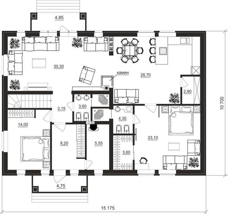• В серийных проектах мы используем буронабивные сваи диаметром 400мм и длиной 3 метра, если иное не требуется по результатам геологии.