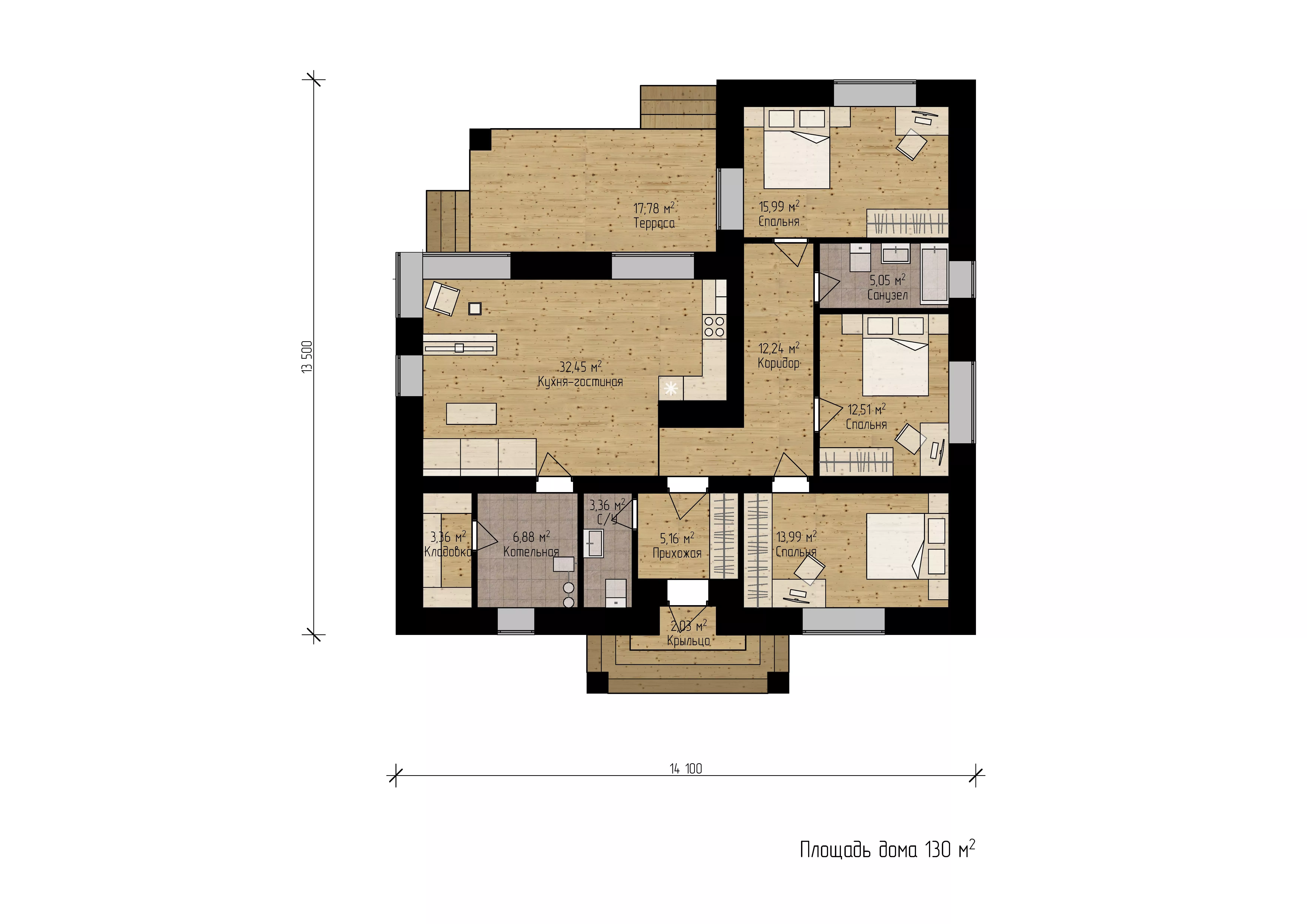 Площадь: 130 м2