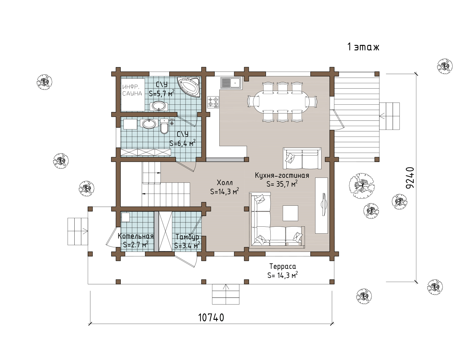 Размер дома 9,2x10,7