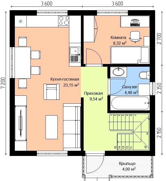 Размер дома 7,2х7,2