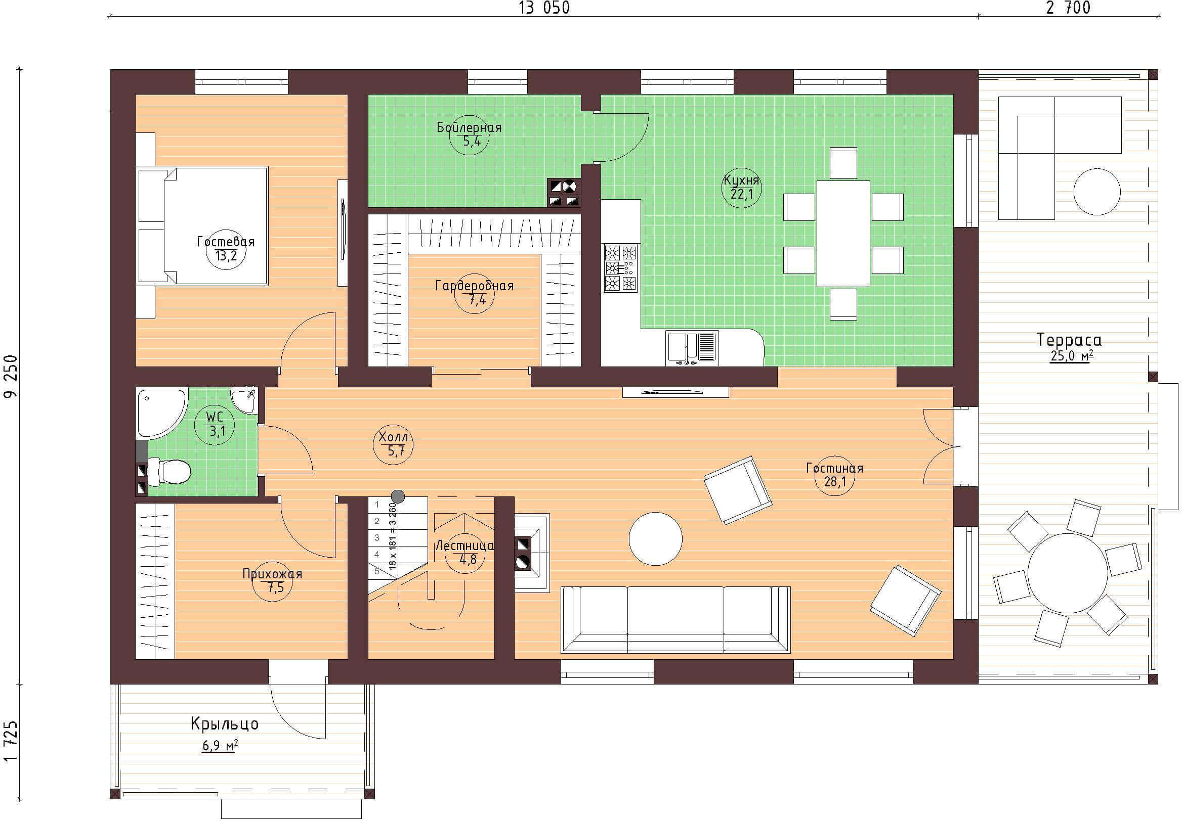 • В серийных проектах мы используем буронабивные сваи диаметром 400мм и длиной 3 метра, если иное не требуется по результатам геологии.