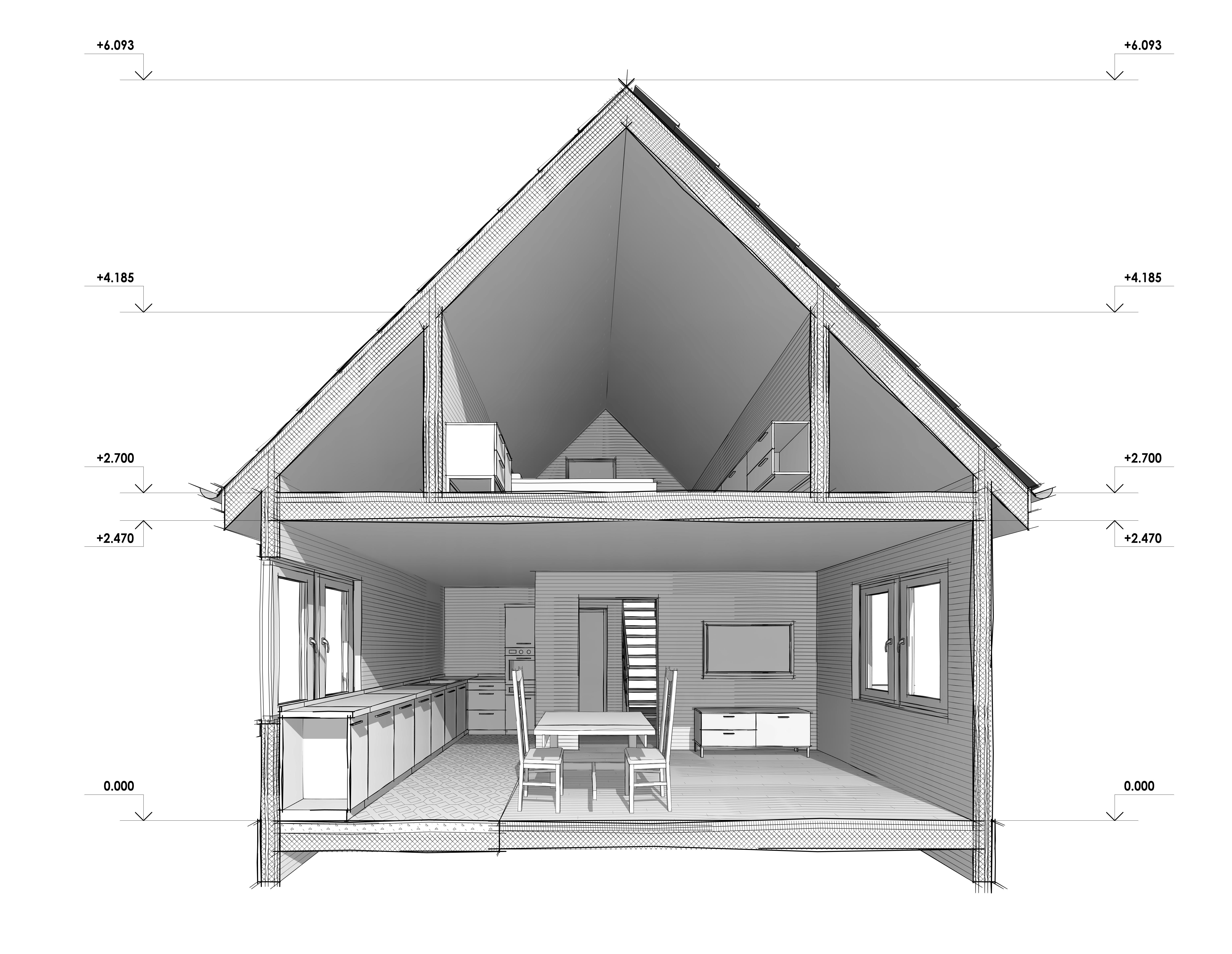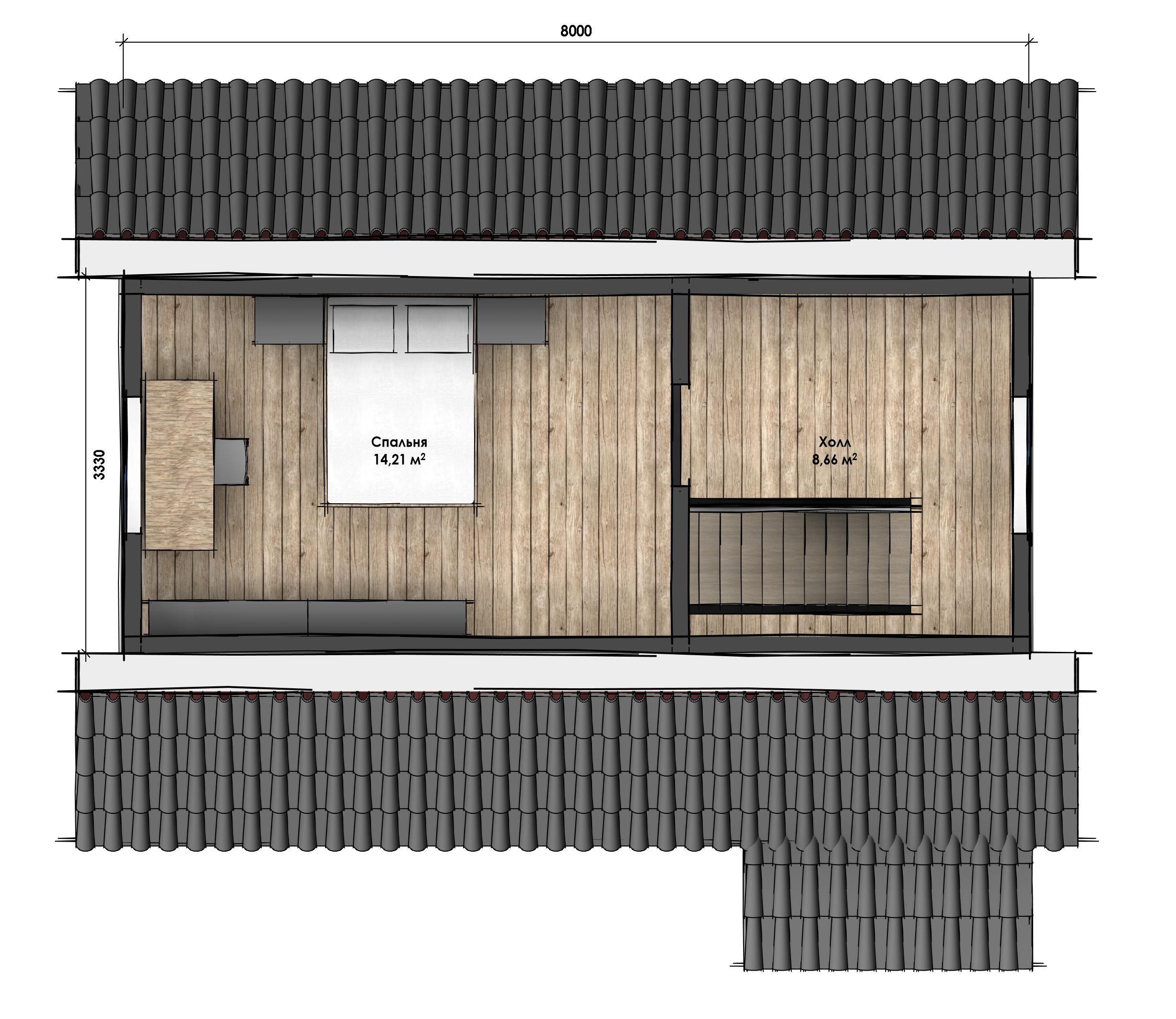 • Покрытие кровли - Гибкая битумная черепица с цветным каменным гранулятом;