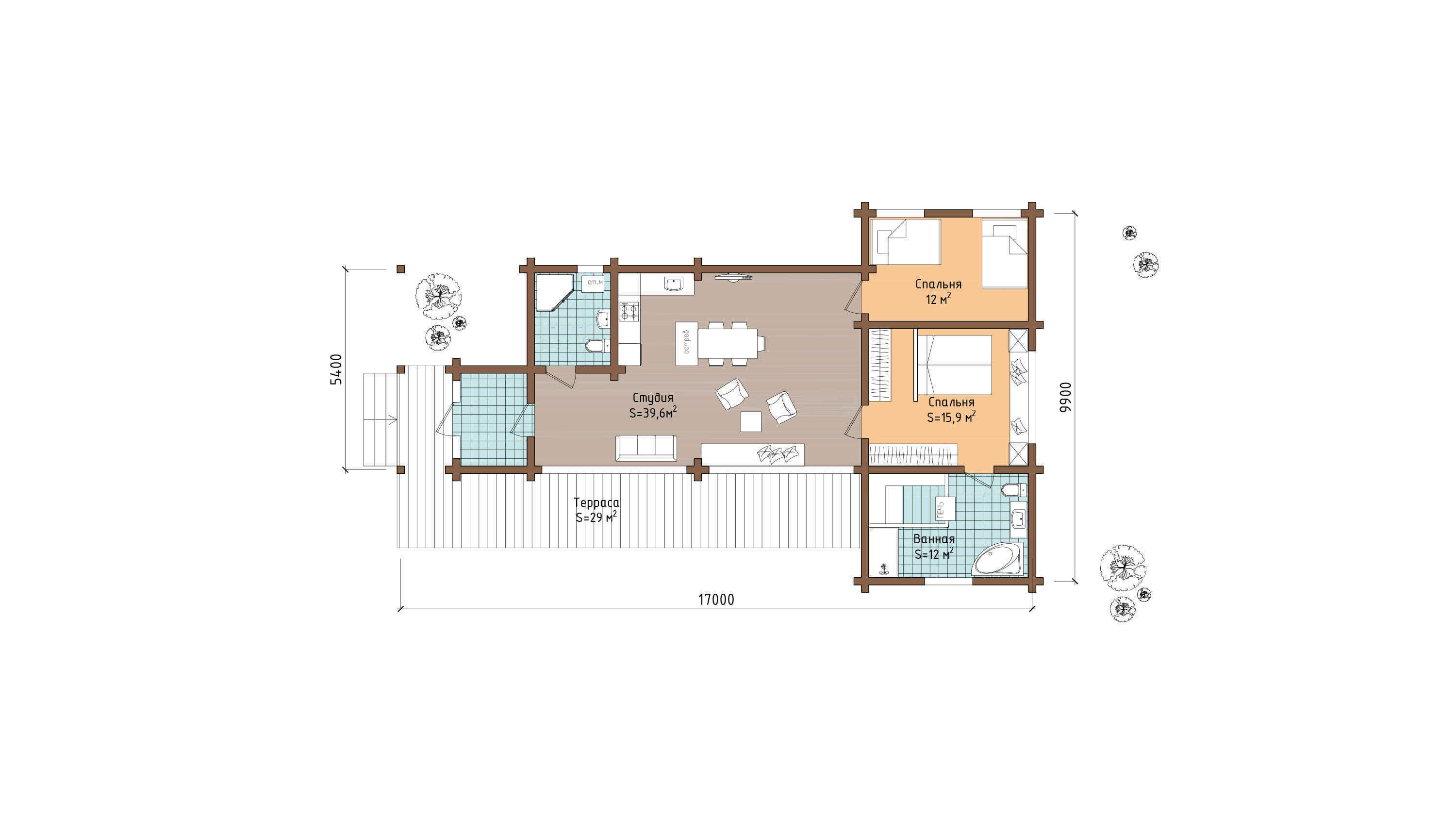 Размер дома 9,9x17,0
