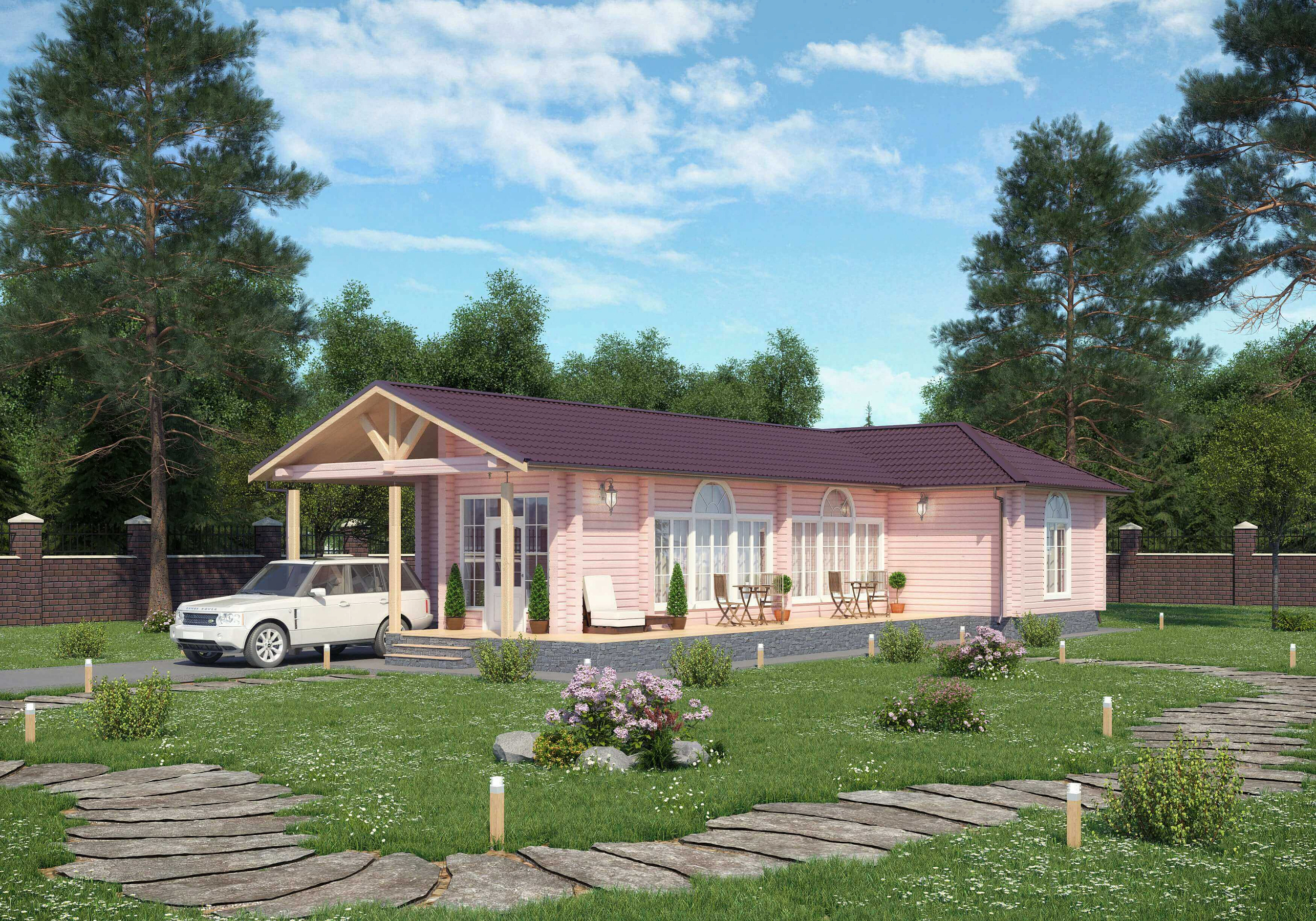 • Покрытие кровли - Гибкая битумная черепица с цветным каменным гранулятом;