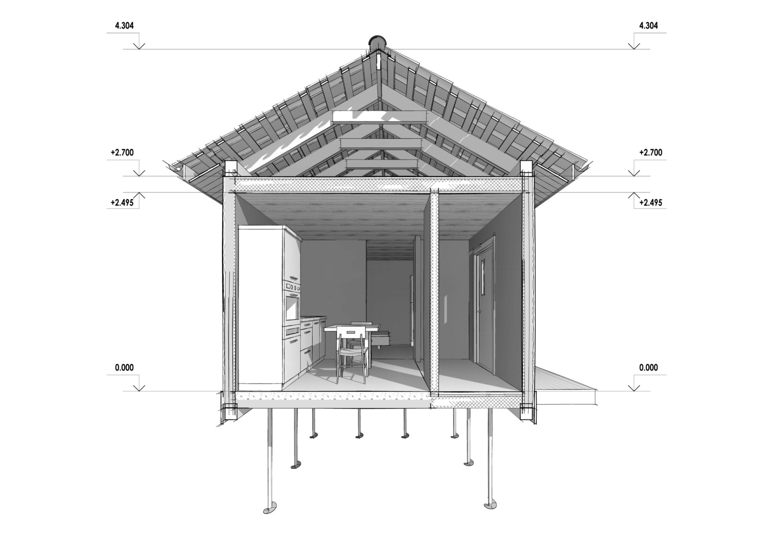 • В серийных проектах мы используем буронабивные сваи диаметром 400мм и длиной 3 метра, если иное не требуется по результатам геологии.
