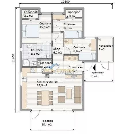 Размер дома 11,4х12,6