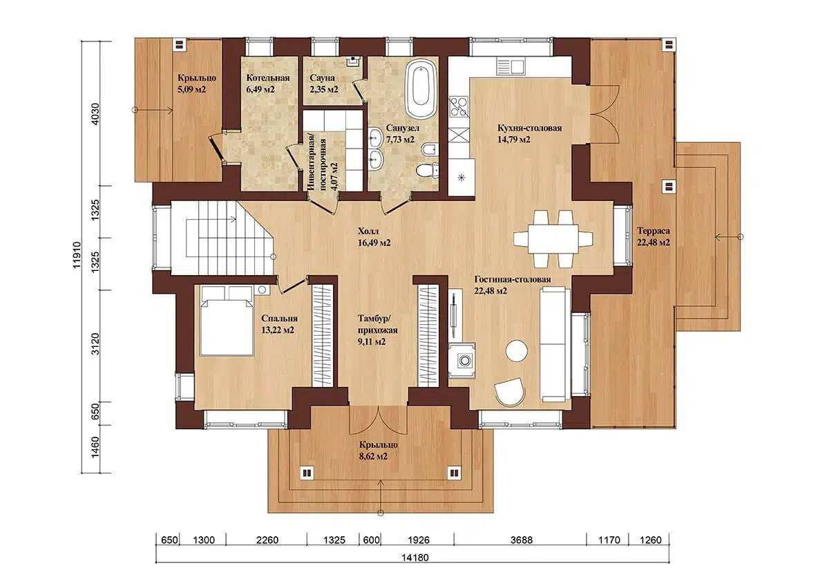 Осуществляем тотальный контроль за всем циклом. И уверенно даем официальную гарантию на построенные нами дома.
