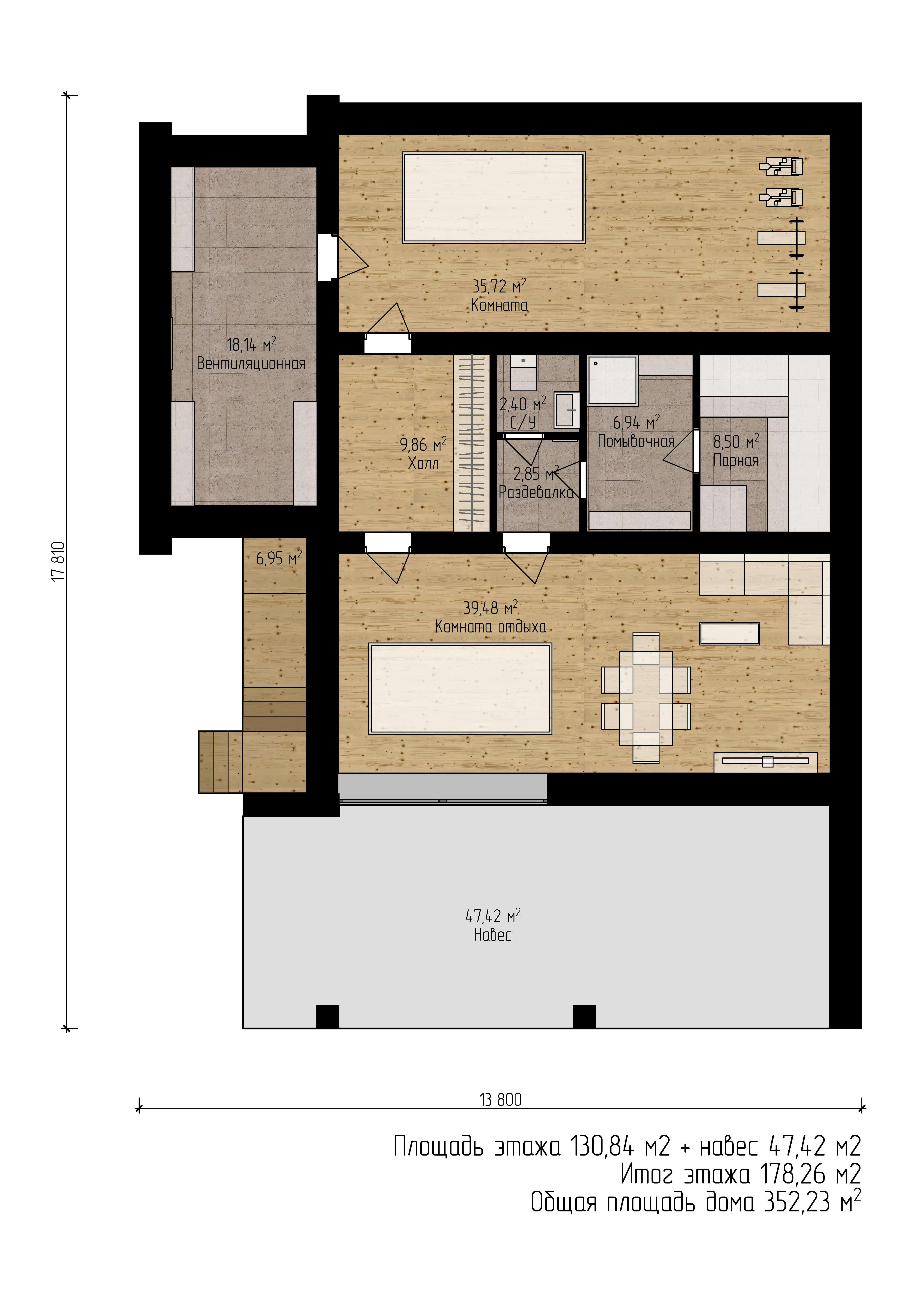Размер дома 13,8х17,8