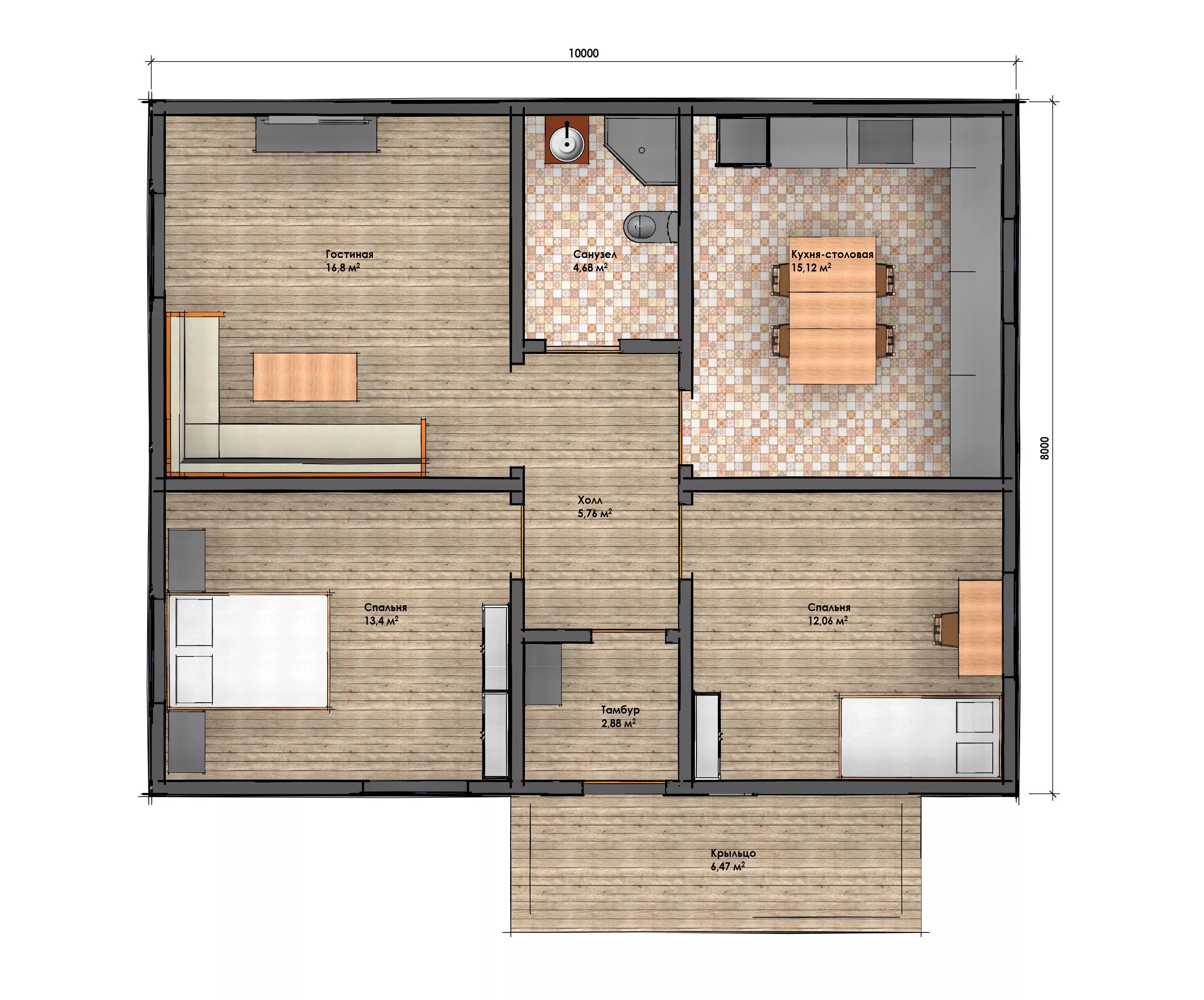 • Покрытие кровли - Гибкая битумная черепица с цветным каменным гранулятом;