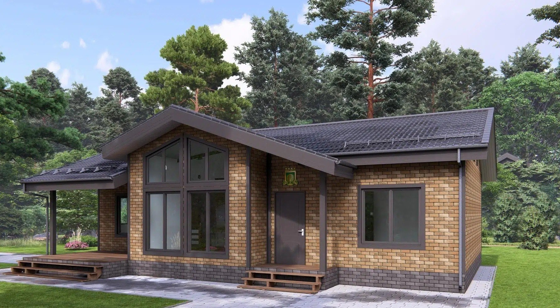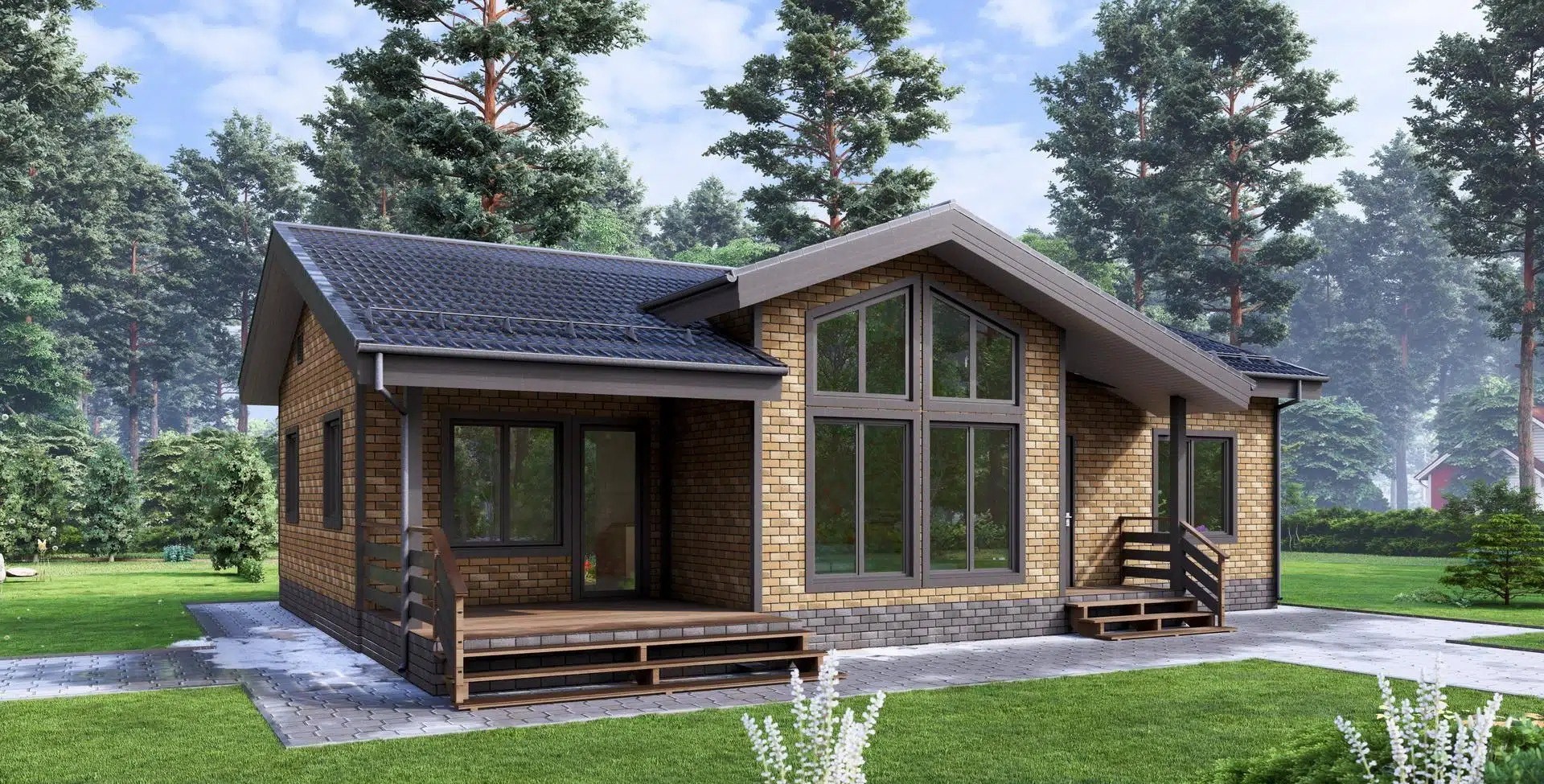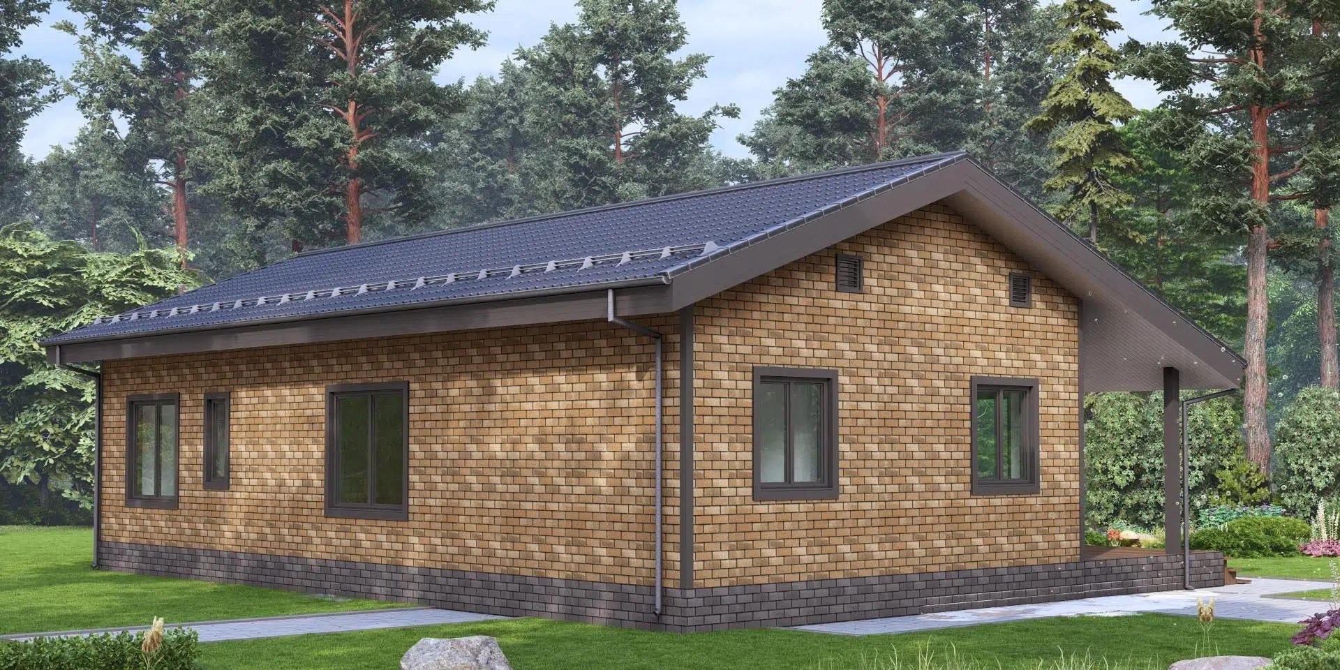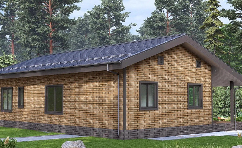 • Покрытие кровли - Гибкая битумная черепица с цветным каменным гранулятом;