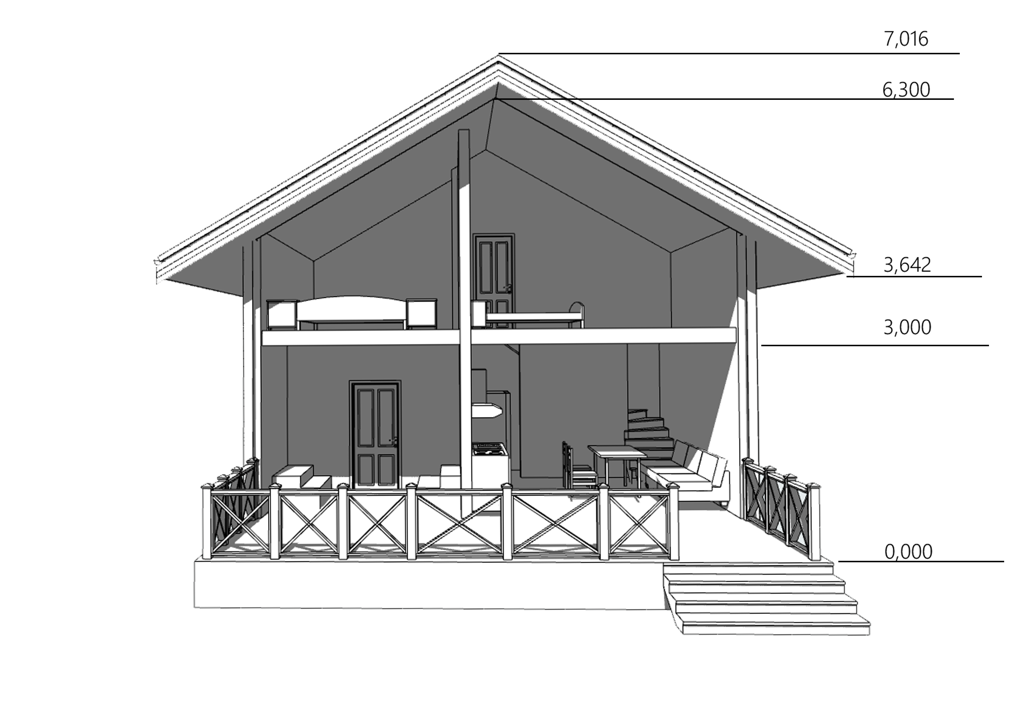 • Покрытие кровли - Гибкая битумная черепица с цветным каменным гранулятом;