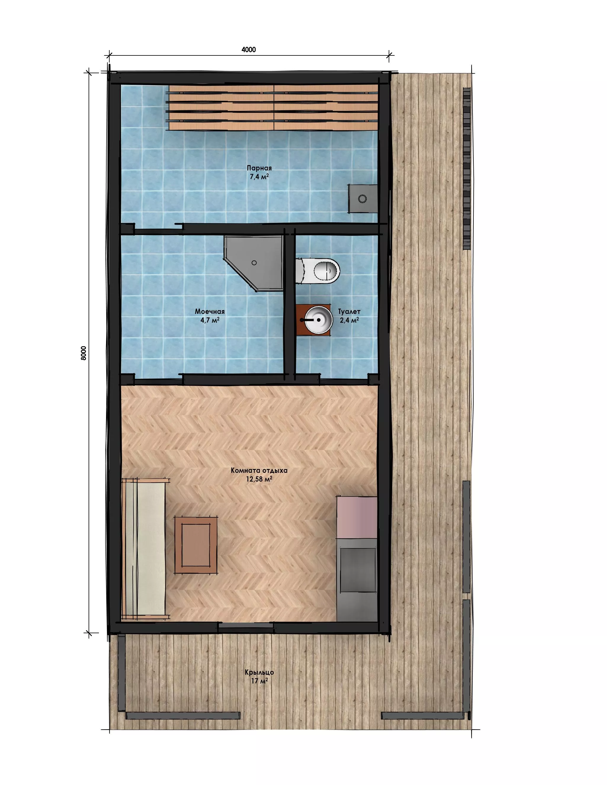 Размер дома 4х8