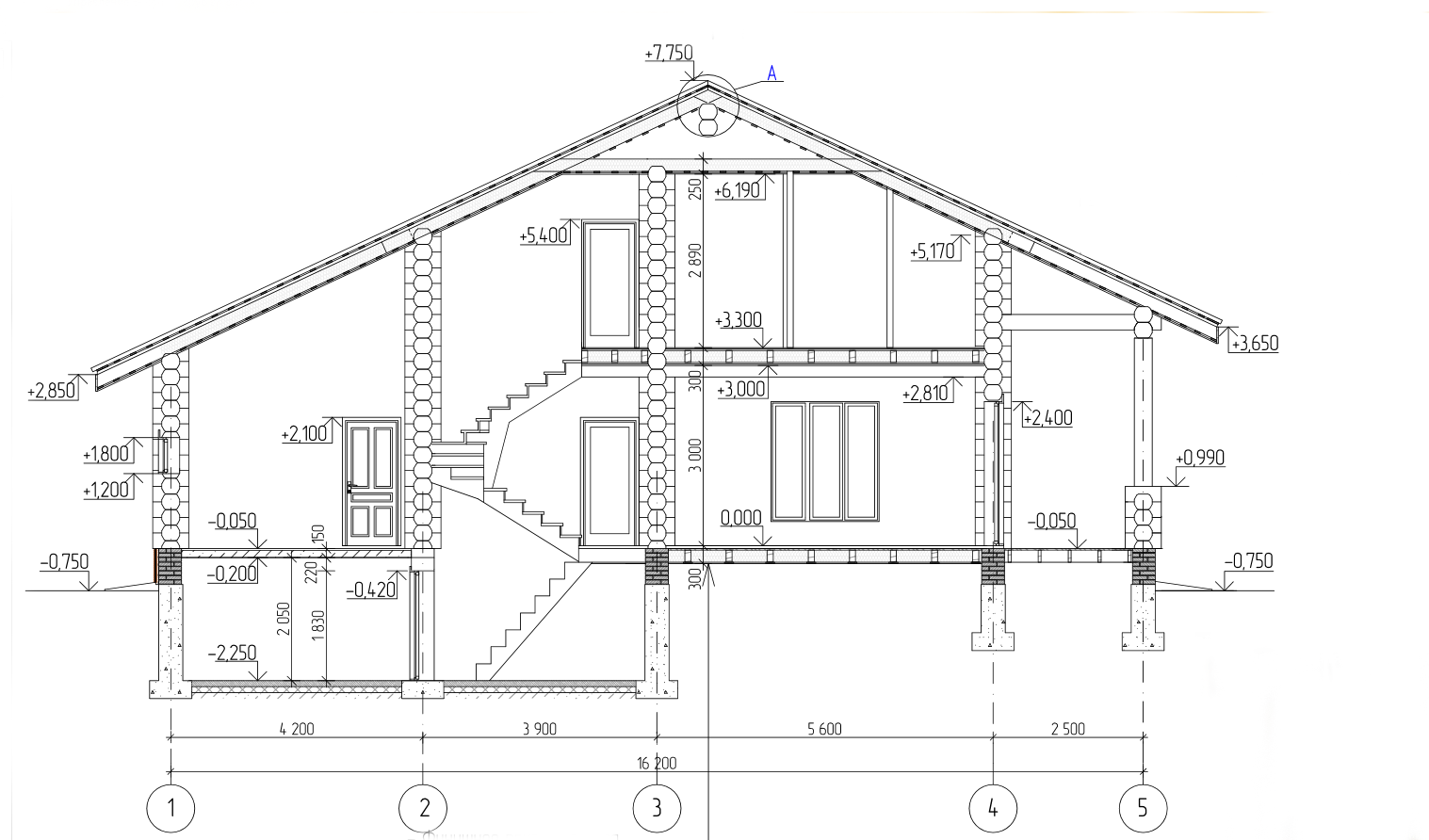 • В серийных проектах мы используем буронабивные сваи диаметром 400мм и длиной 3 метра, если иное не требуется по результатам геологии.