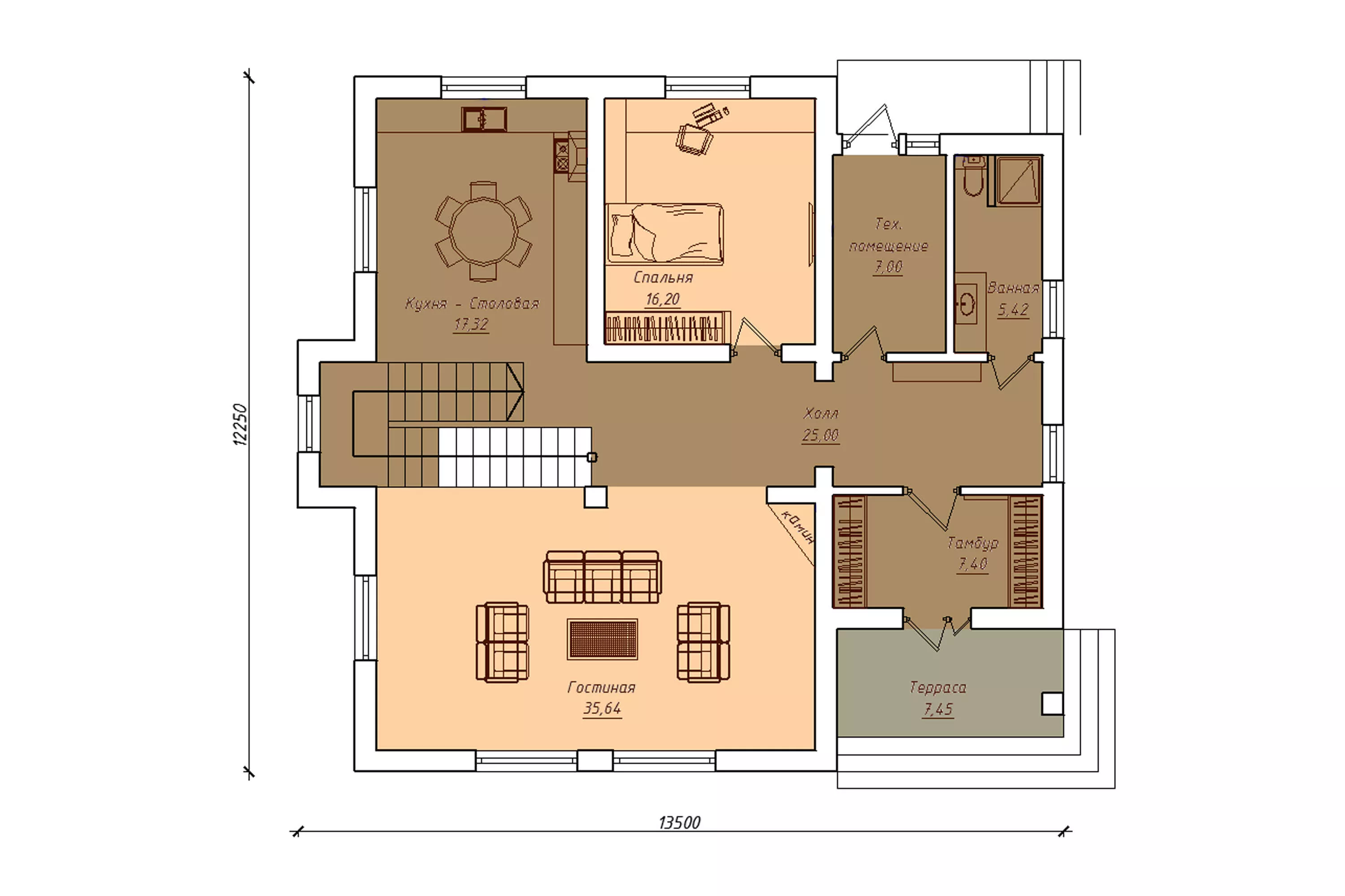 Размер дома 12,2x13,5
