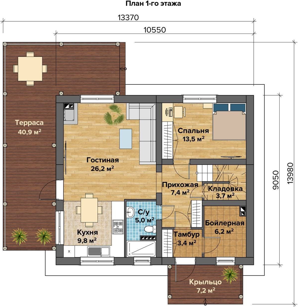 Размер дома 13,3х13,9