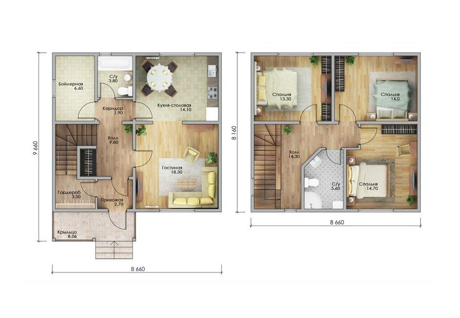 Размер дома 8,6x9,6