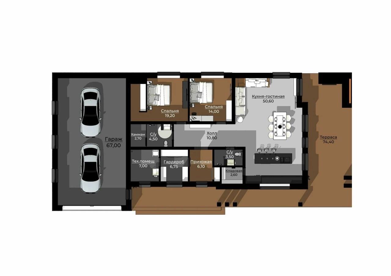 • Покрытие кровли - Гибкая битумная черепица с цветным каменным гранулятом;