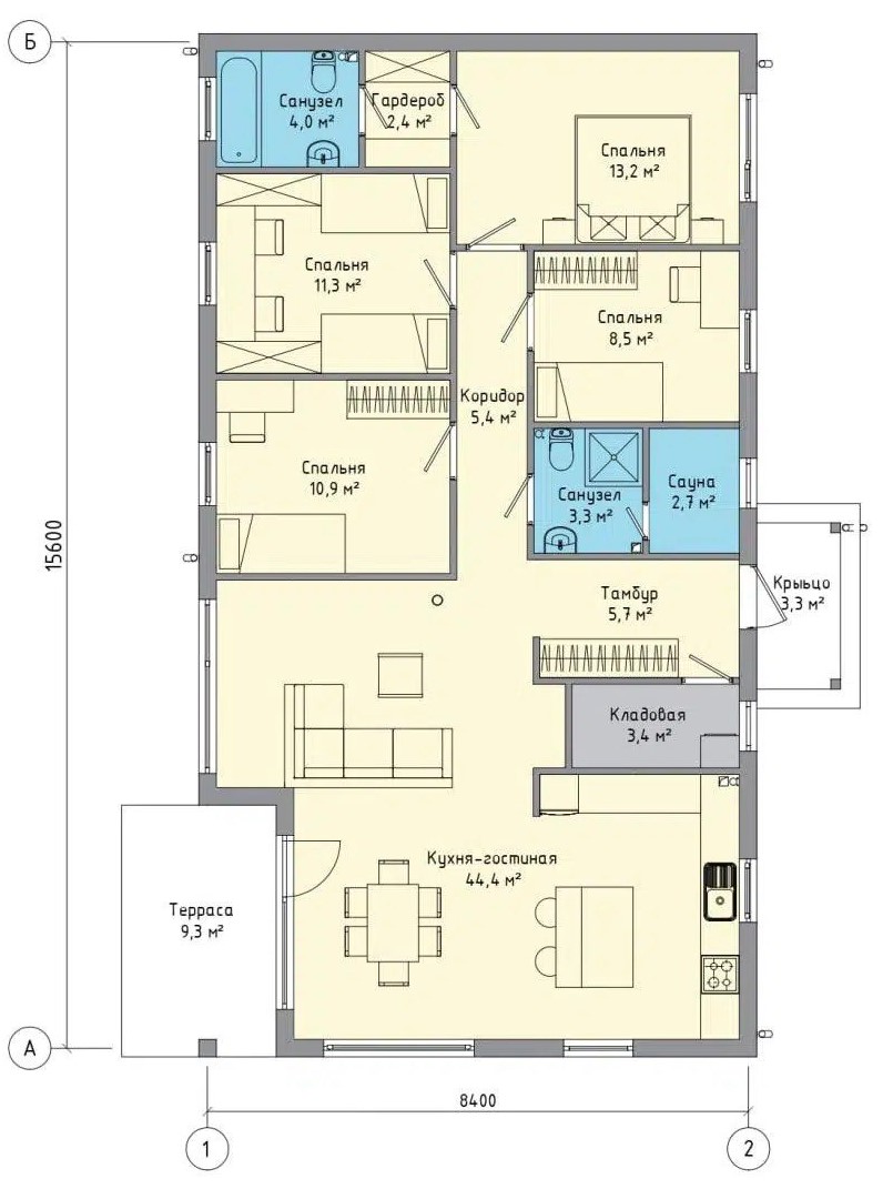 Размер дома 15,6х8,4