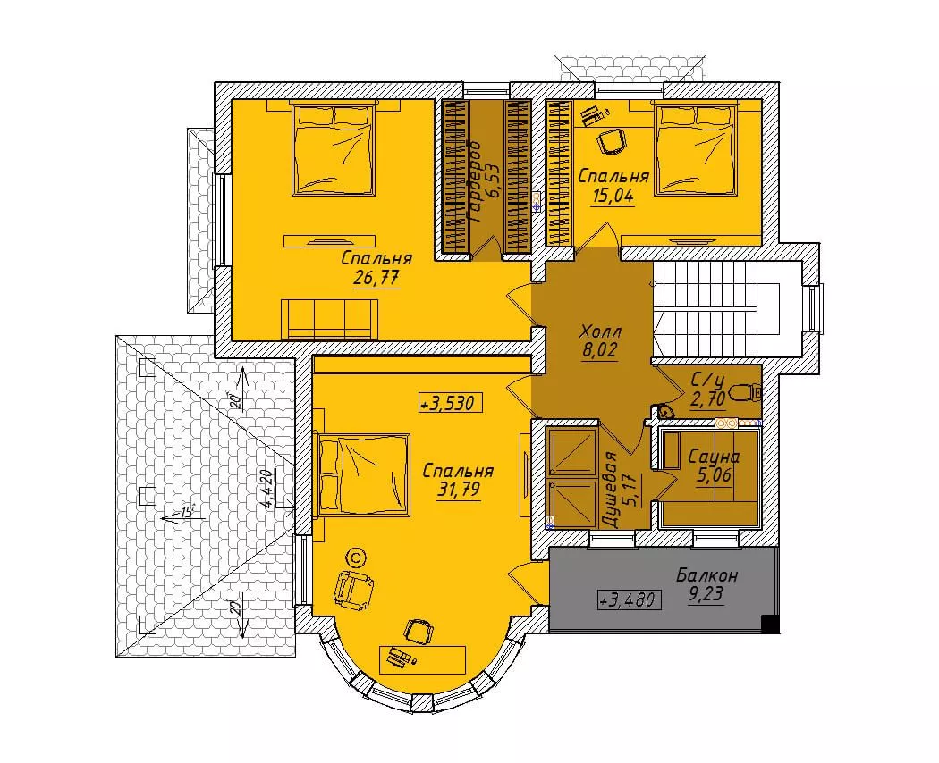 Кол-во спален с 4 спальнями