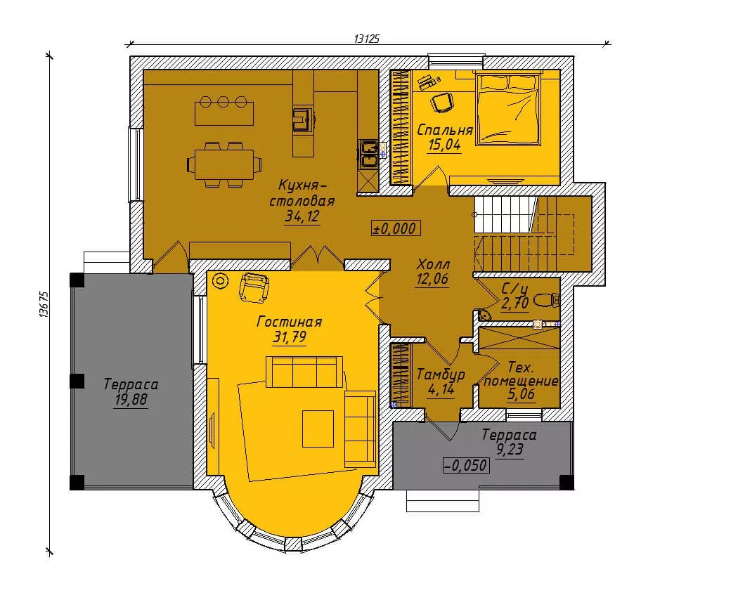 Размер дома 13,1x13,6