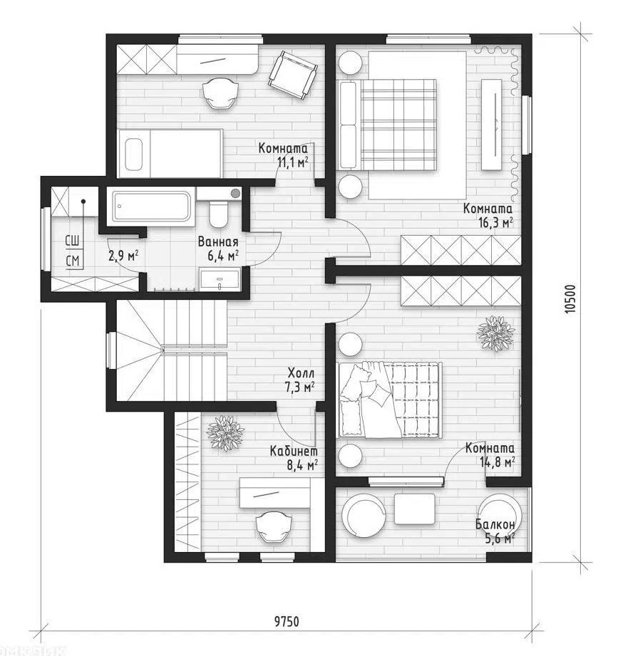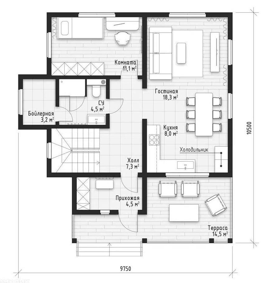 Размер дома 10,5х9,7