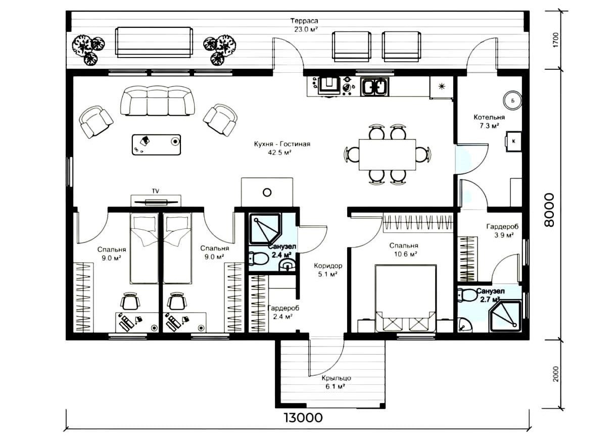 Размер дома 8х13